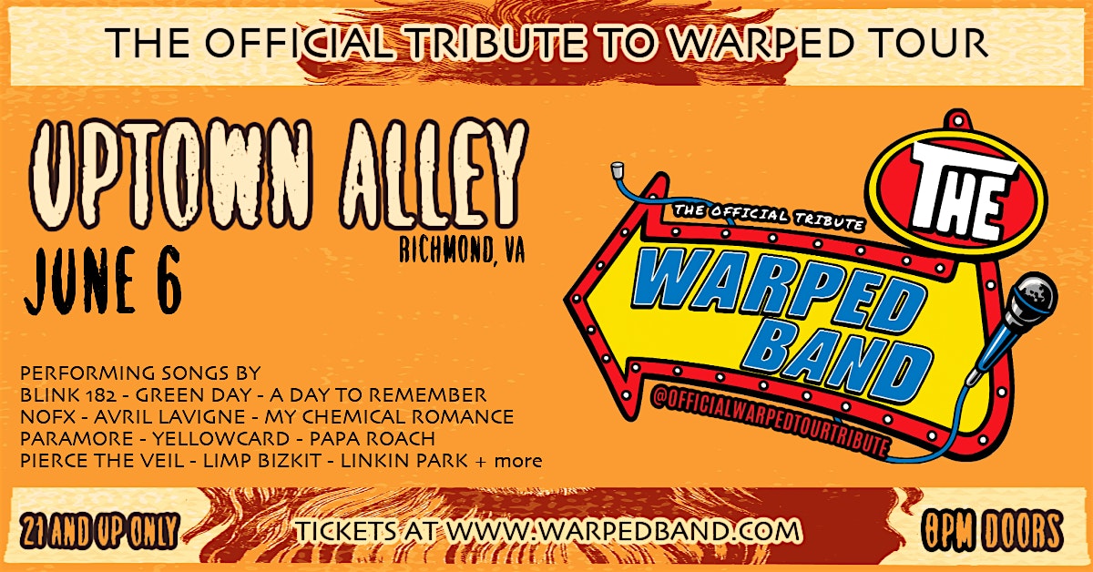 Join us at Uptown Alley on Saturday, June 6th for a rocking throwback night with The Warped Band!Uptown Alley & LXGRP Presents:The Warped Band - The Official Tribute to Warped Tour!The Warped Band is the official tribute that resurrects the spirit of the legendary Warped Tour, honoring the festival that brought us unforgettable summers filled
