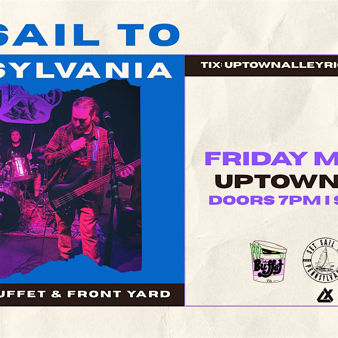 Join us at Uptown Alley on Friday, May 29th for a rocking night with Set Sail To Pennsylvania, Musko Buffet & Front Yard!Uptown Alley & LXGRP Presents:⛵ SET SAIL TO PENNSYLVANIA: Live at Uptown Alley! 🎸Get ready for a night of high-energy live music as Set Sail to Pennsylvania takes the stage! We're bringing the