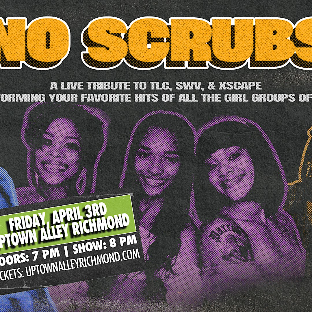 NO SCRUBS is a high-energy live band concert and dance party celebrating the legendary girl groups TLC, SWV, Xscape and more!Uptown Alley & EMG & LXGRP Presents:🎶NO SCRUBS - The 90s R&B Girl Group Party 👑A Tribute to TLC • SWV • Xscape & More!💎Richmond… get ready for a 90s R&B party like no other.NO
